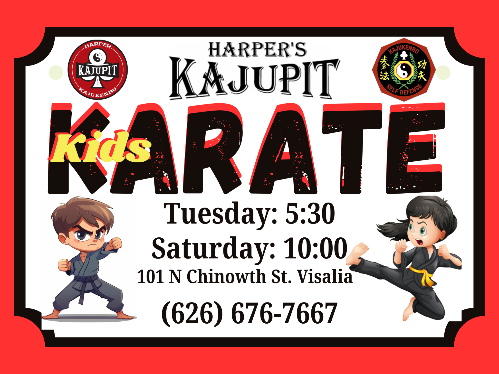 Harper's Kajupit Youth classes build confidence, discipline, and respect while teaching kids real-world self-defense in a fun, supportive environment. Students learn striking, grappling, and situational awareness through age-appropriate training that keeps them active, focused, and safe.